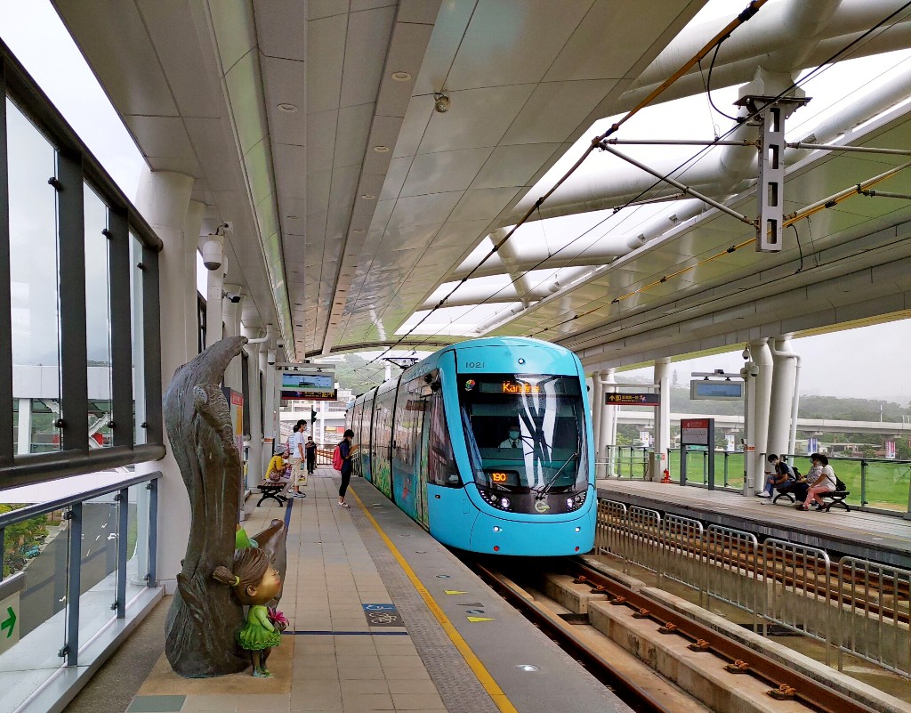 因後半段的淡海輕軌是行駛在平面上,所以我們特地搭到最後一站崁頂體驗一下